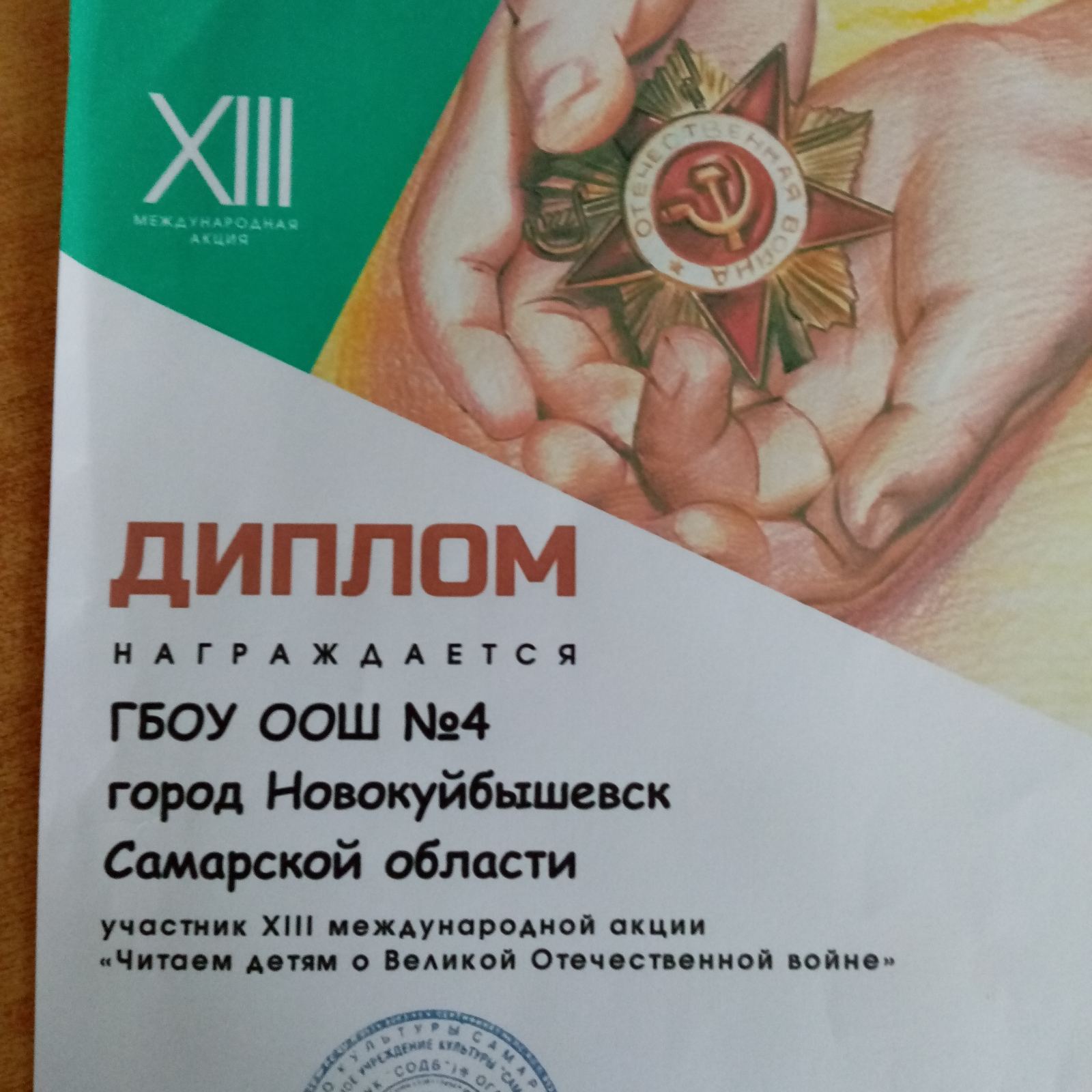Учащиеся нашей школы получили диплом за участие в 13 Международной акции «Читаем детям о Великой Отечественной войне».