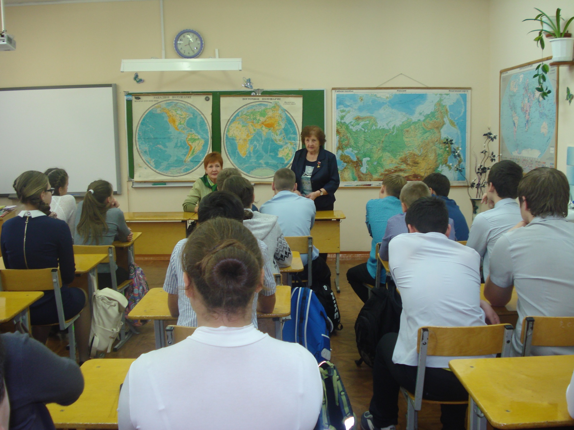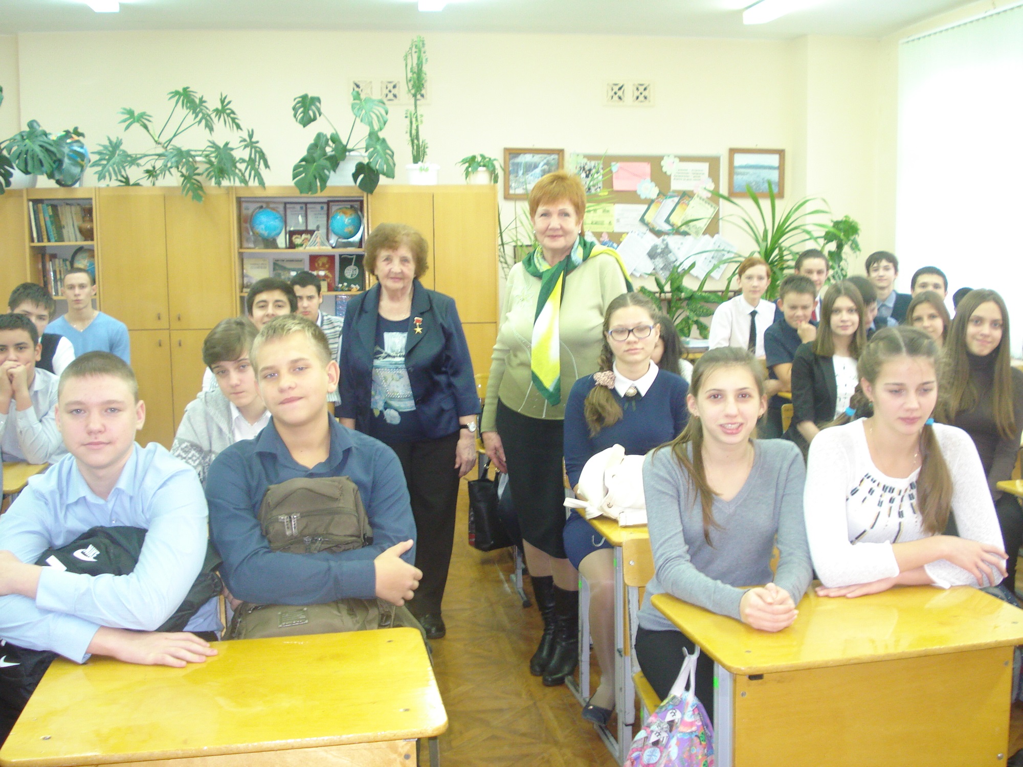 26 октября 2015 г. в 8 «А» и 8 «Б» классе прошел классный час «День памяти жертв политических репрессий», на котором присутствовали герой Социалистического труда, почётный гражданин города Нина Михайловна Фёдорова, председатель общественной организации жертв политических репрессий г.о. Новокуйбышевск Любовь Михайловна Николаева. Ребята слушали рассказ Н.М.Фёдоровой о тяжёлой судьбе её родителей, ставших жертвами политических репрессий.
