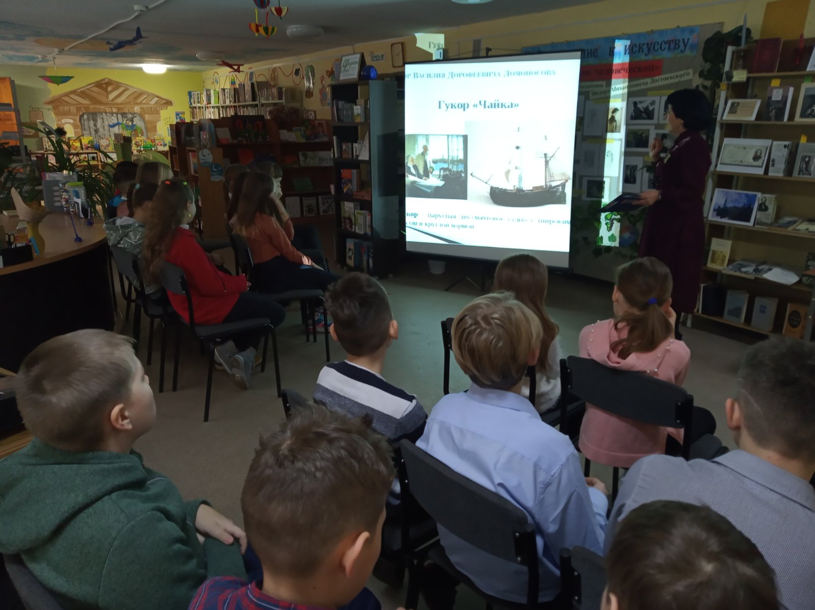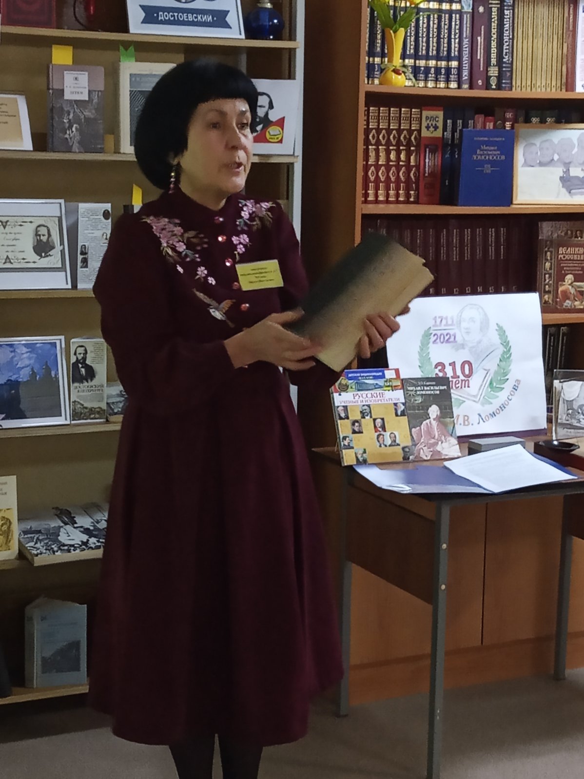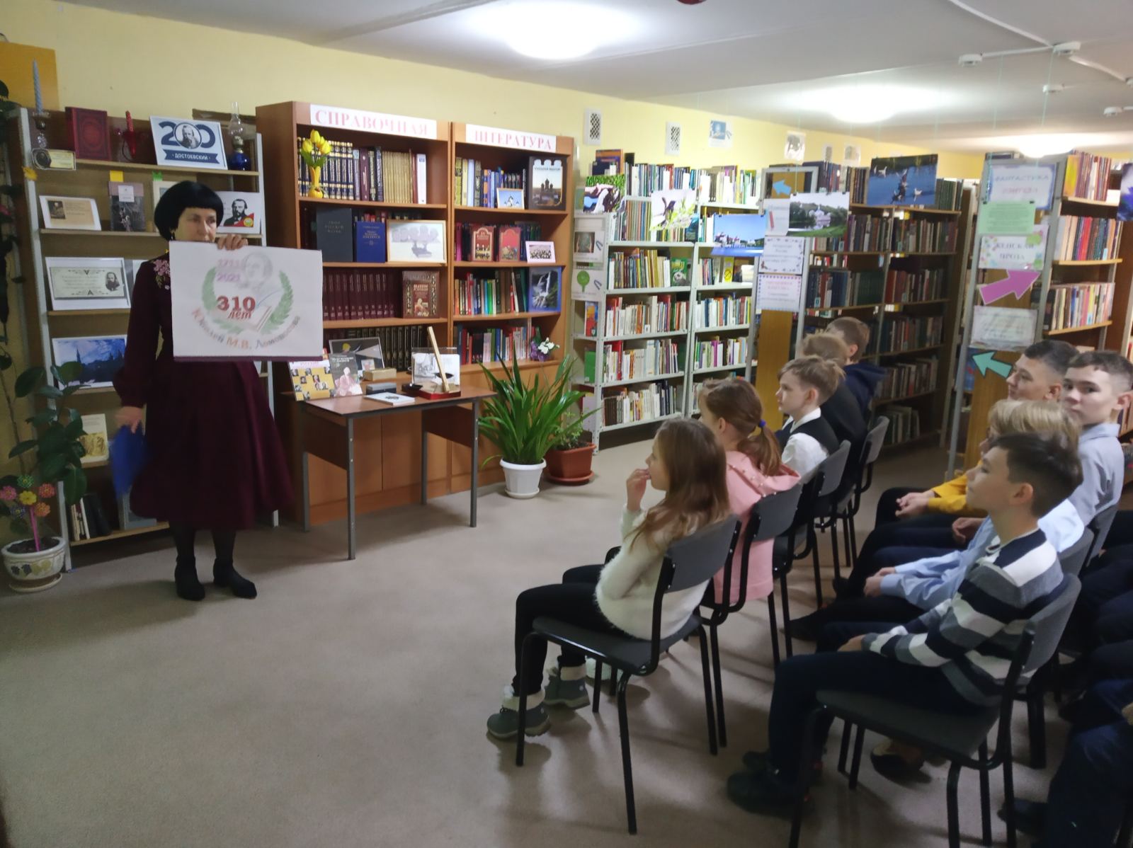 19 ноября ребята 5Б класса приняли участие в библиотечном уроке, посвященном 310-летию со дня рождения М. В. Ломоносова. Мероприятие было проведено на базе библиотеки-филиала №7.