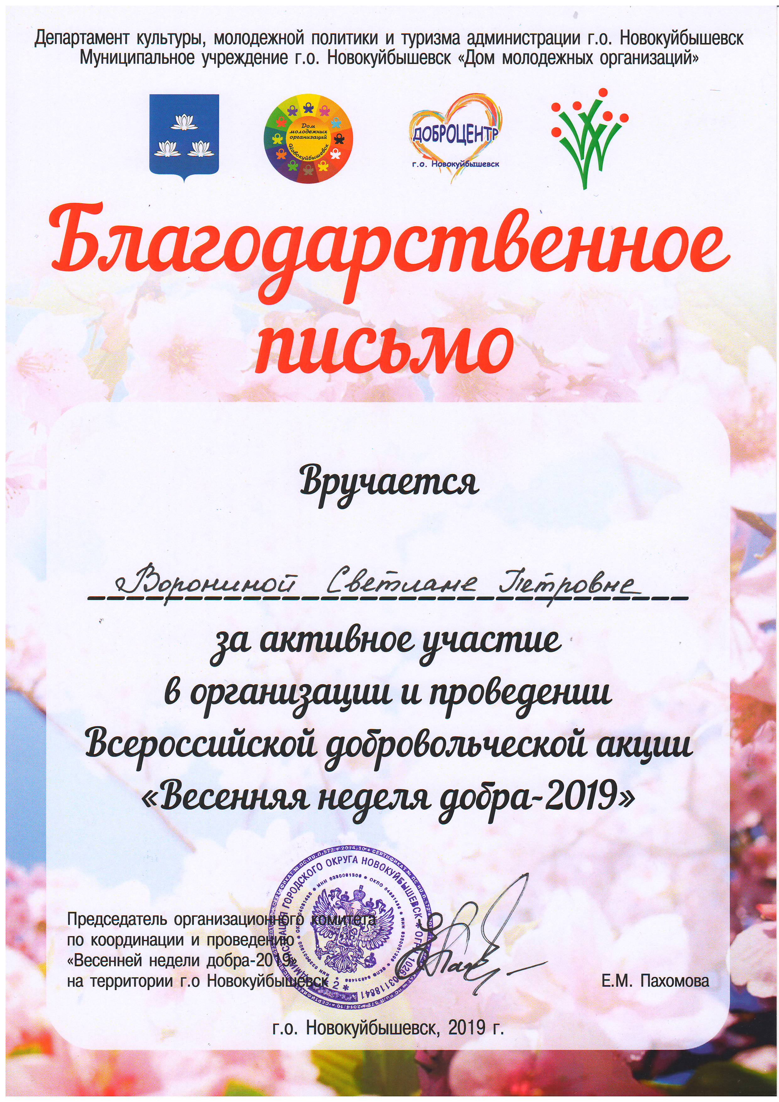 План мероприятий, посвященных Весенней неделе добра 2019