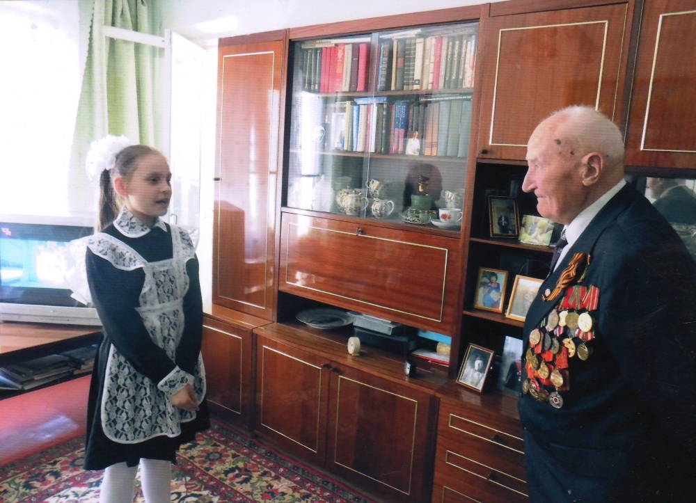 В преддверии Дня Победы 07 мая 2017 года учащиеся 2Б класса вместе с классным руководителем Лаптевой Валентиной Степановной побывали в гостях у Ивана Ивановича Сказченко, участника Великой Отечественной войны. Ребята прочитали ветерану стихи о войне, спели песню «Три танкиста», вручили букет цветов в знак благодарности и пожелали крепкого здоровья.