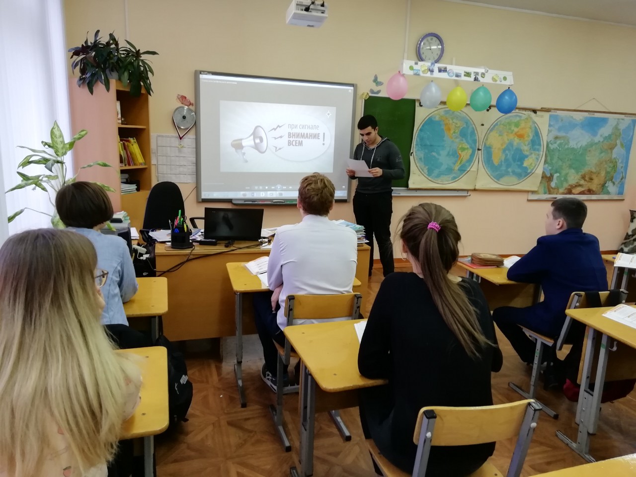 30 октября в рамках месячника ГО среди учащихся 8-х классов прошёл урок по гражданской обороне, на котором ребята посмотрели видеоролики, подготовили сообщения о том, что необходимо делать при сигнале «Внимание всем!» и что необходимо взять с собой получив информацию о начале эвакуации.