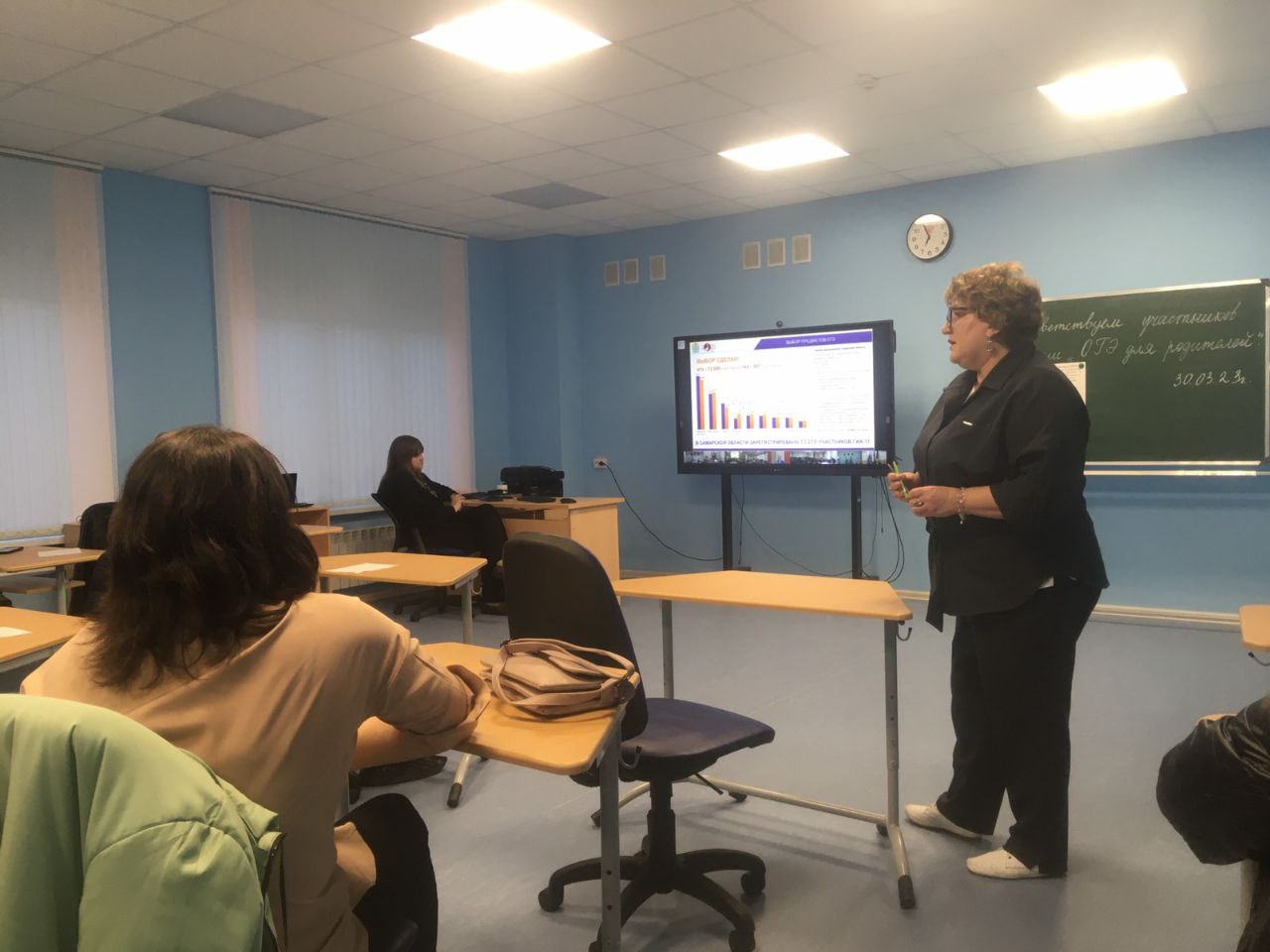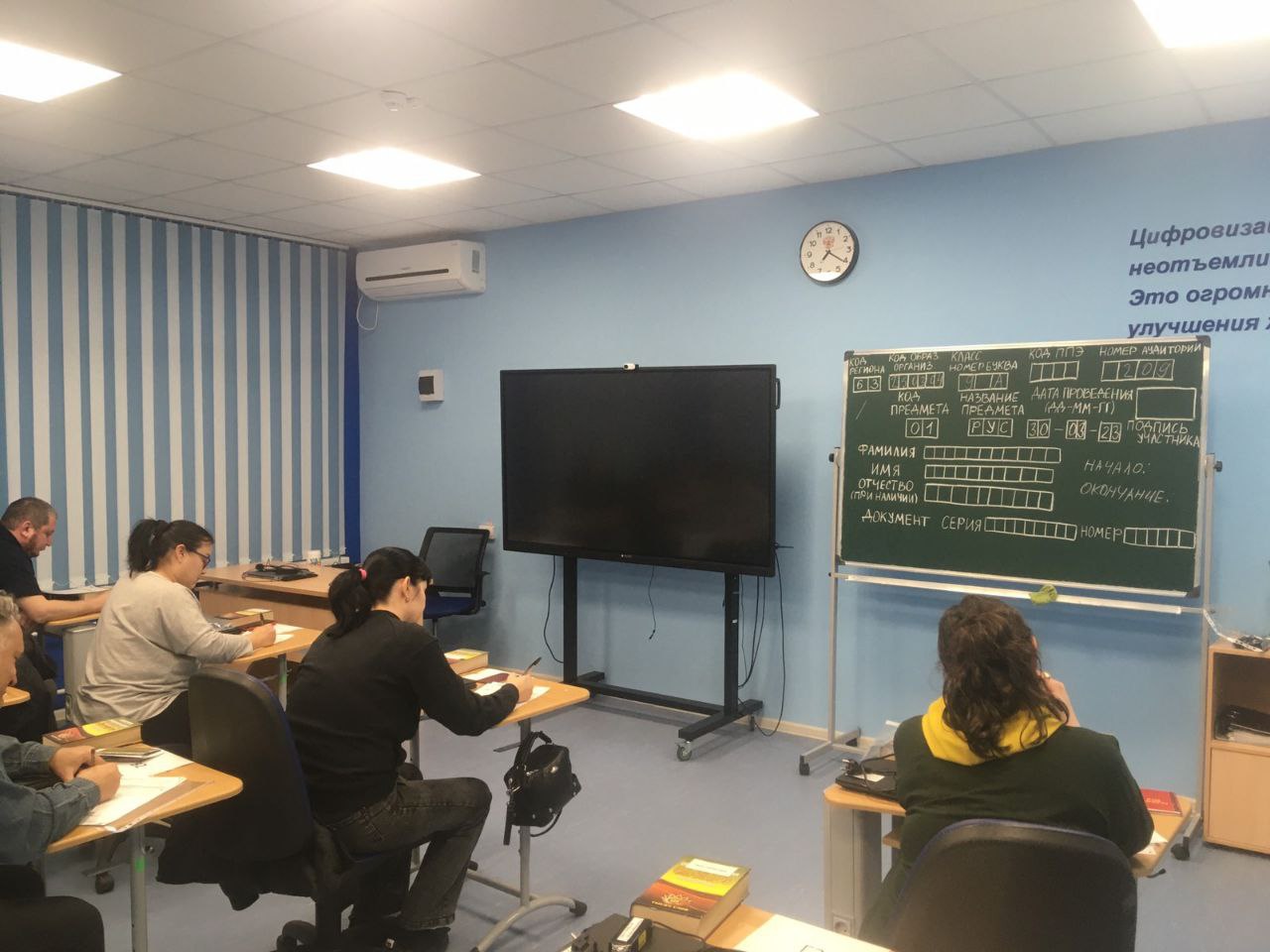 30 марта в нашей школе в рамках региональной Акции «Единый день сдачи ОГЭ родителями» после видеотрансляции встречи родительского актива с Губернатором Самарской области законные представители 9 классников приняли участие в импровизированном экзамене по русскому языку. Вход в аудиторию по документу, удостоверяющему личность, инструктаж, оформление бланка ответа черными гелевыми ручками, КИМы . С целью снятия психологического напряжения, связанного с подготовкой и проведением государственной итоговой аттестации все родители получили памятки «Повышатели настроения» и «Как преодолеть волнение перед экзаменом».