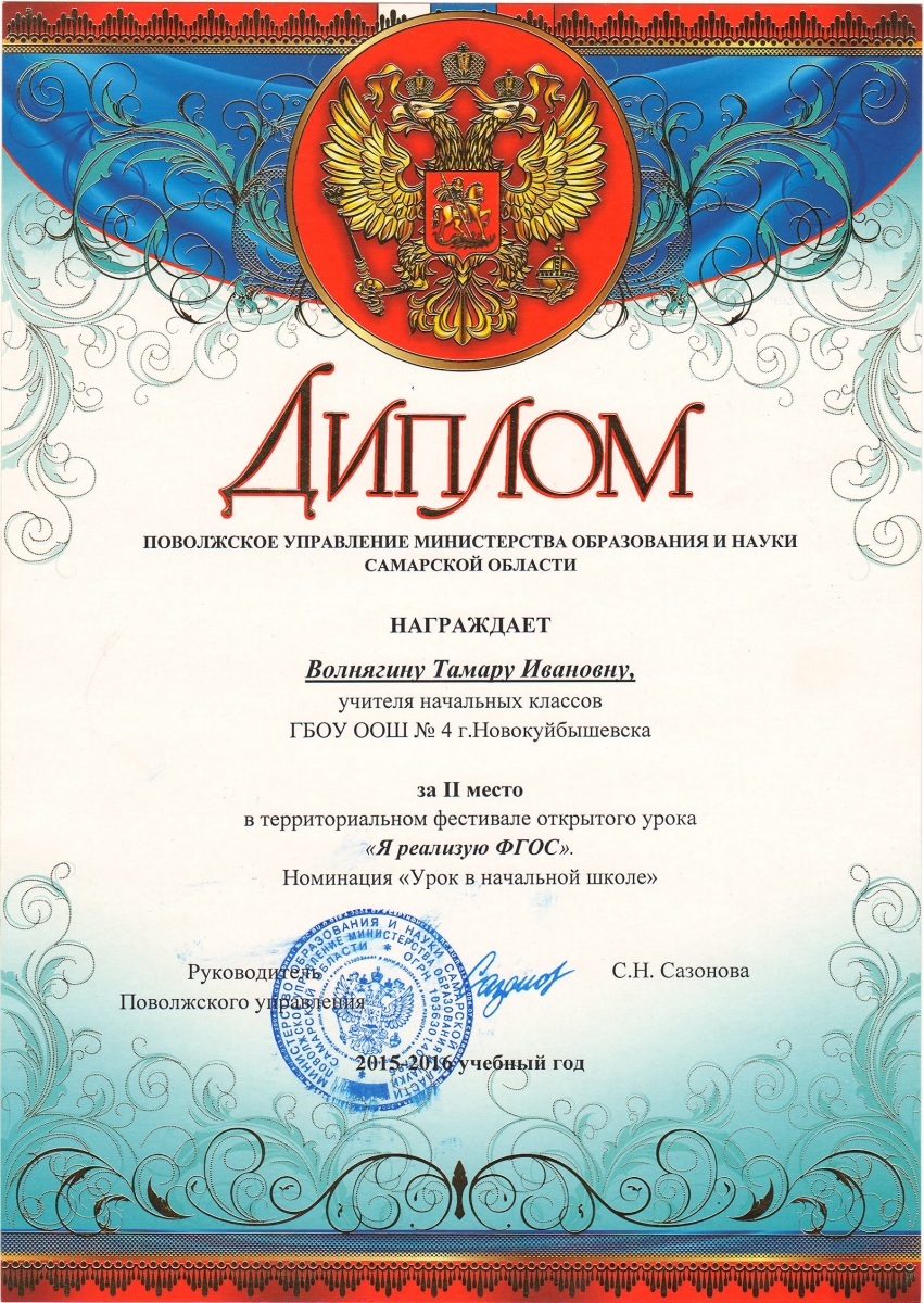 Второе место заняла учитель начальных классов Волнягина Тамара Ивановна.