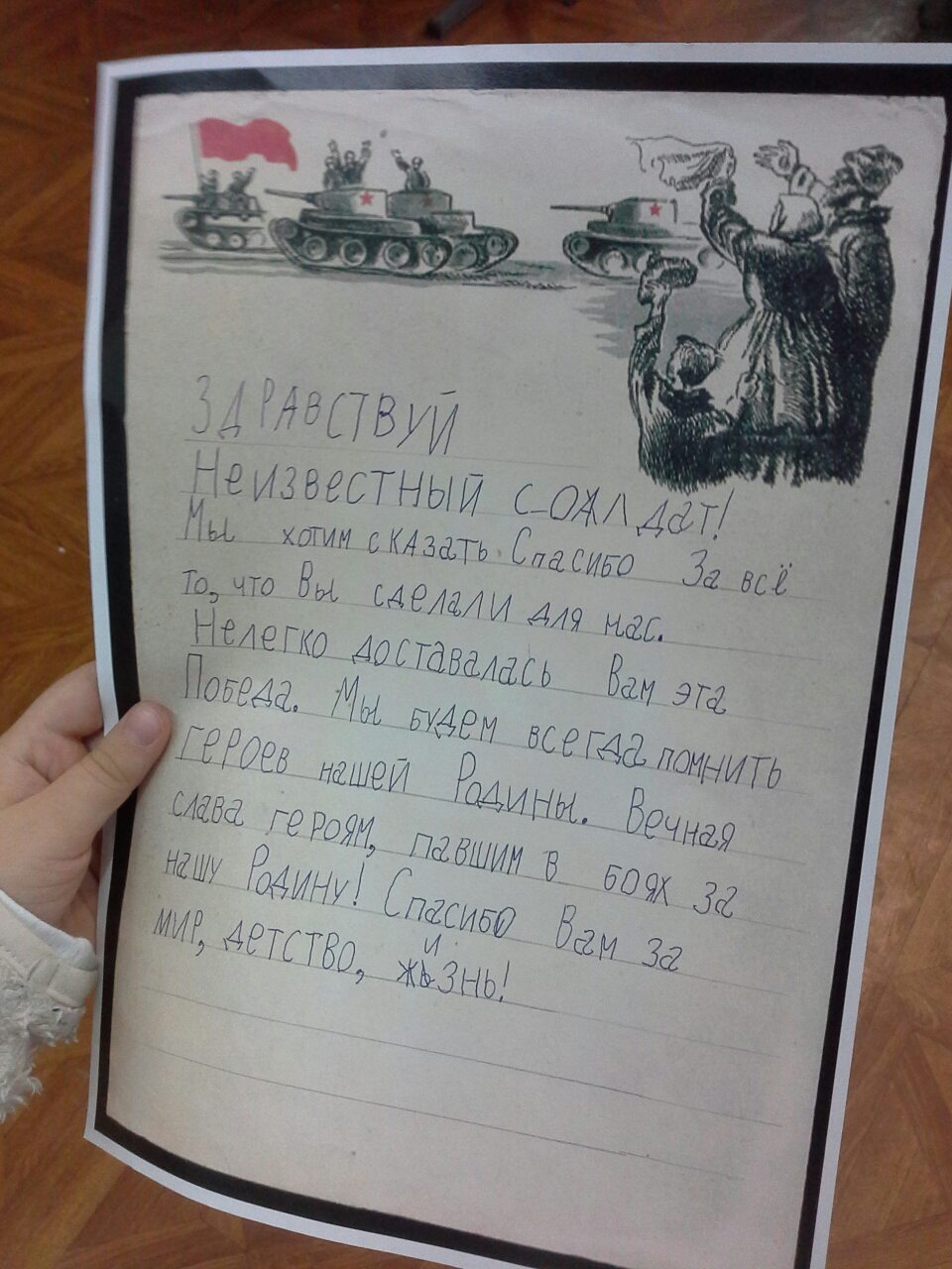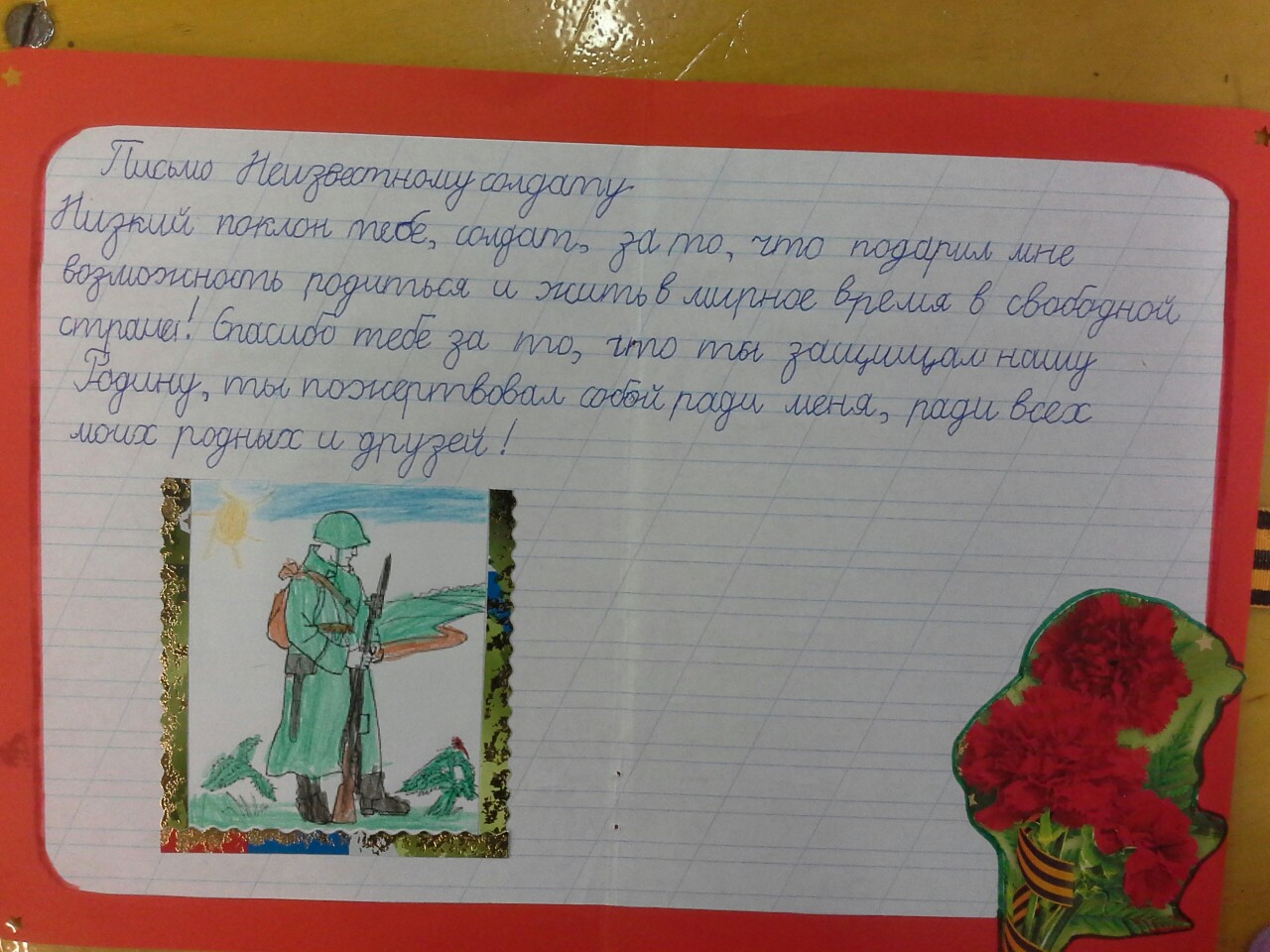 Классный час в 1А классе «Письмо неизвестному солдату»
