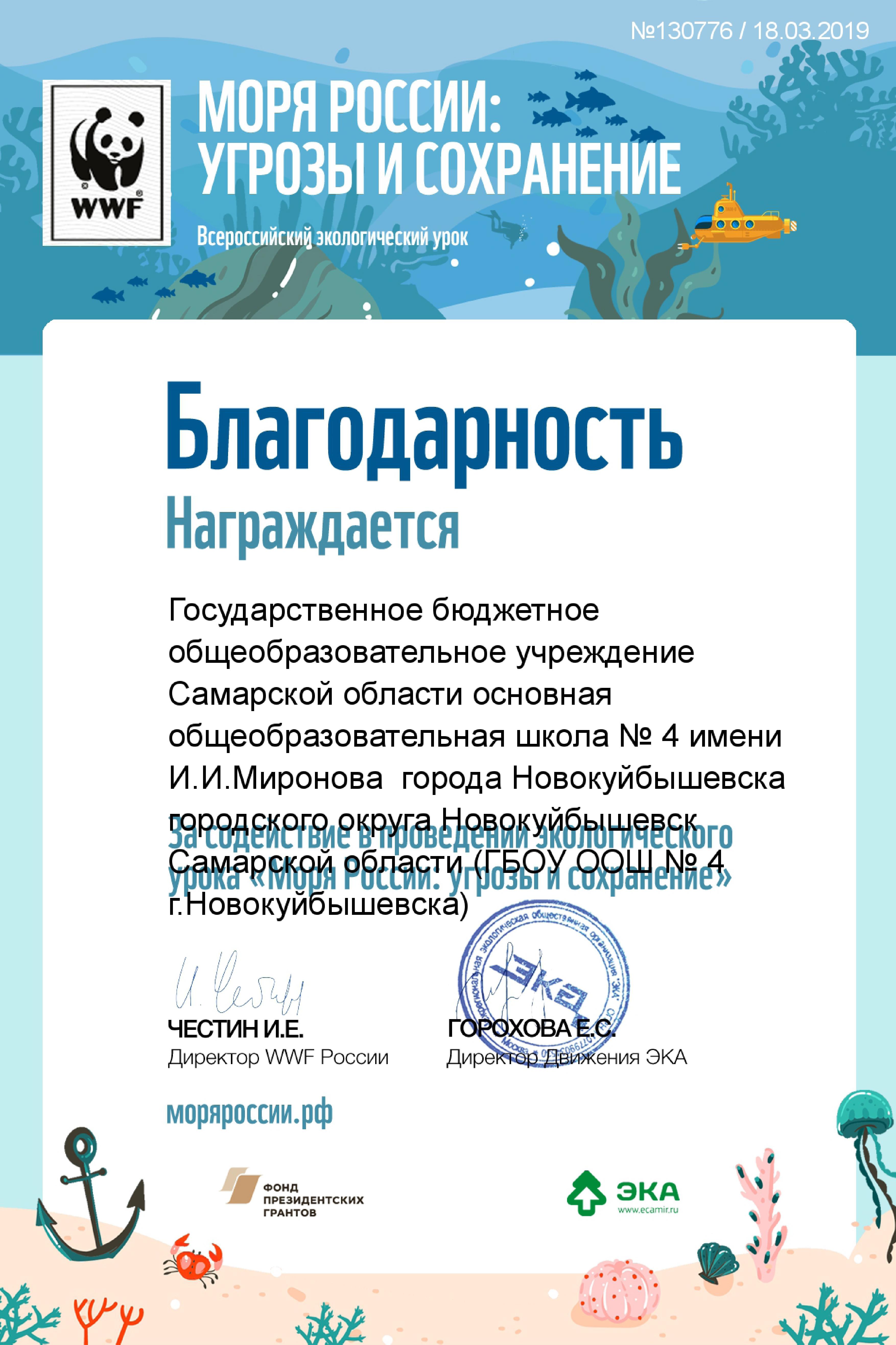 18 марта 2019 года в 1Б классе прошёл Всероссийский интерактивный экоурок «Моря России: угрозы и сохранение». На уроке школьники узнали о значении морей и океанов в жизни всех живых существ нашей планеты и о том, как сохранять прекрасный водный мир