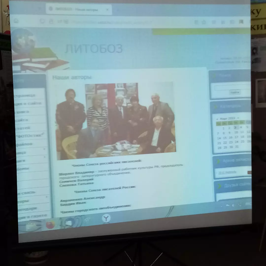 Сегодня праздник, Всемирный День писателя! Учащиеся 9а класса приняли участие в Литературной встрече «Новокуйбышевск литературный». Разговор вели Почетный председатель старейшего литературного объединения города Новокуйбышевска» ГОРЛИТО» ВЛАДИМИР МИХАЙЛОВИЧ ШАРЛОТ и нынешний Председатель городского литературного объединения ВАЛЕРИЙ ПЕТРОВИЧ УСТИН. На встрече была и молодая поэтесса ОЛЬГА ЕГОРЫЧЕВА.