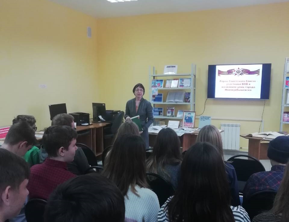 04 декабря 2018 года обучающиеся 9А, 9Б, 7А классов посетили интересное мероприятие, организованное Центром правовой информации на тему «Герои Советского Союза в названии улиц города Новокуйбышевска».