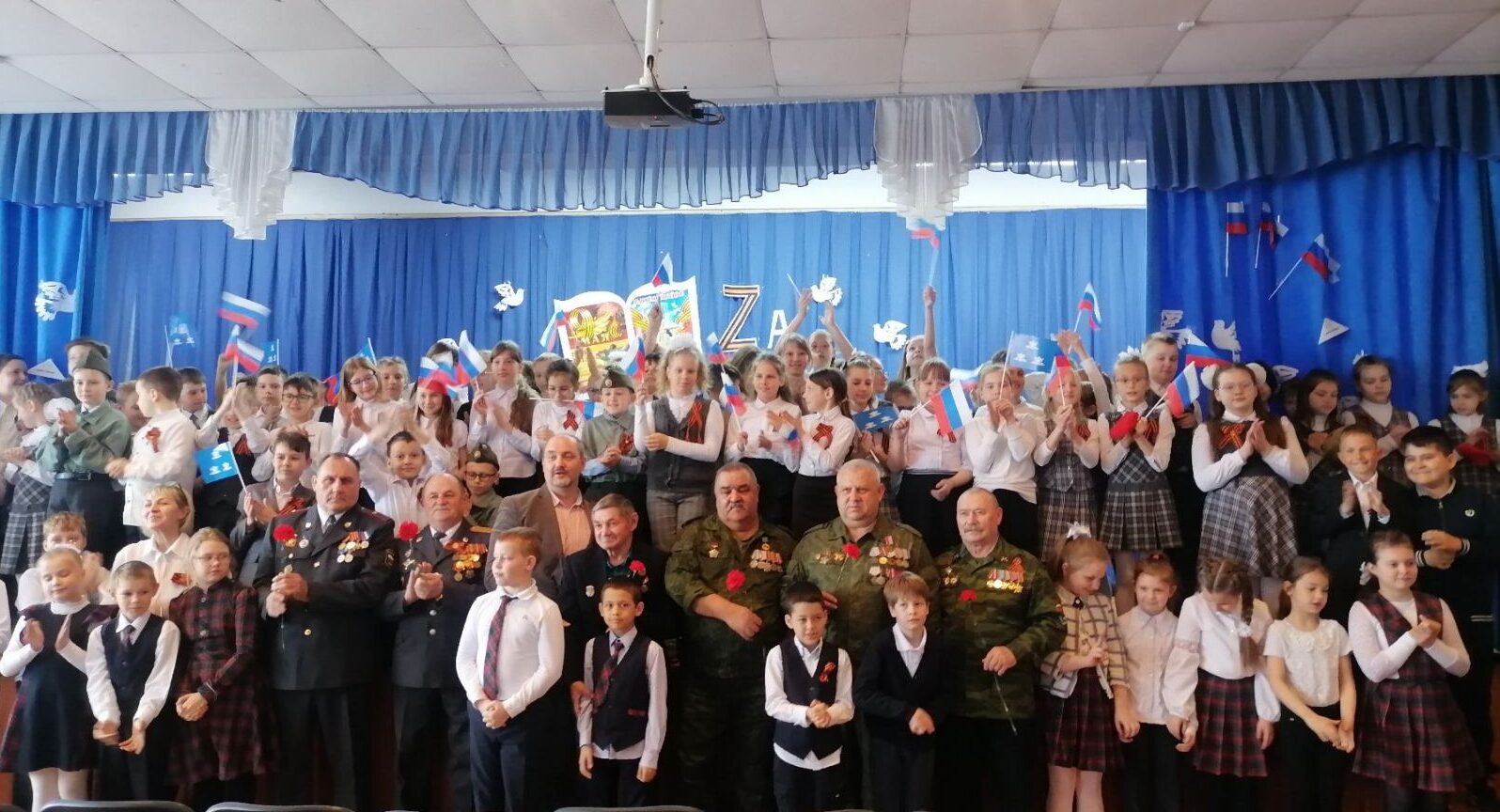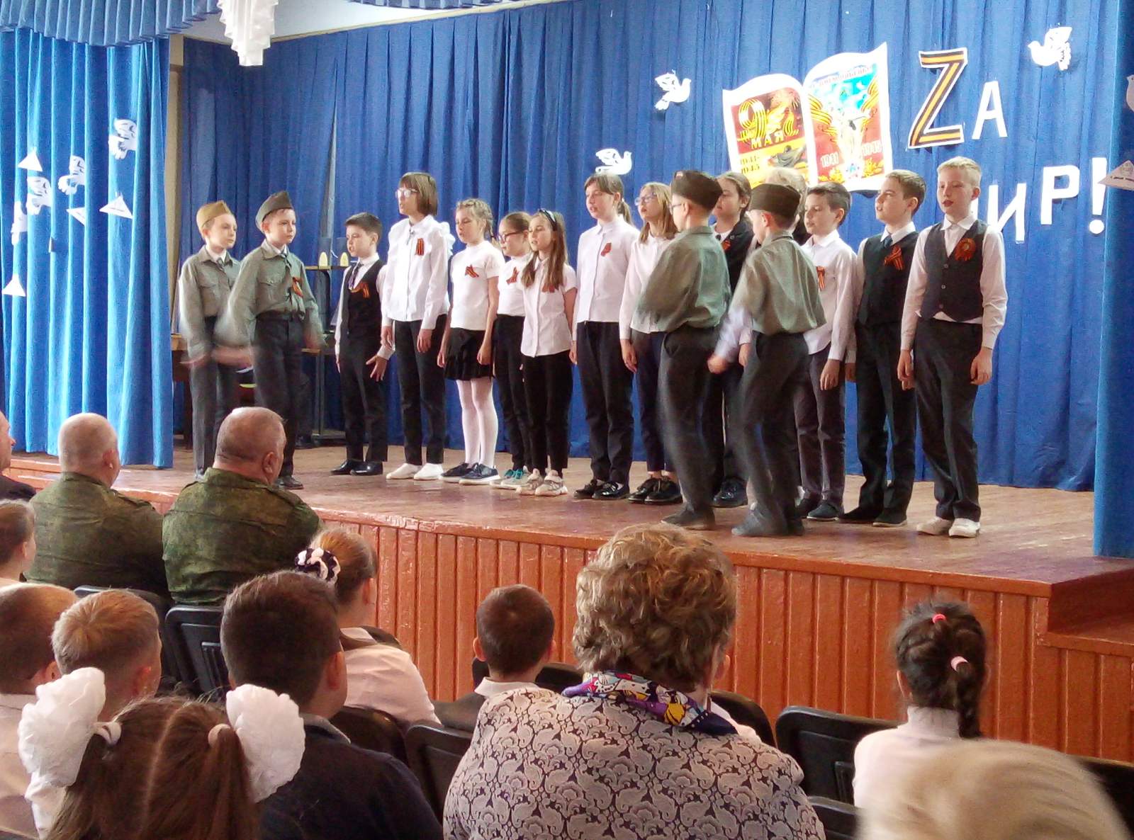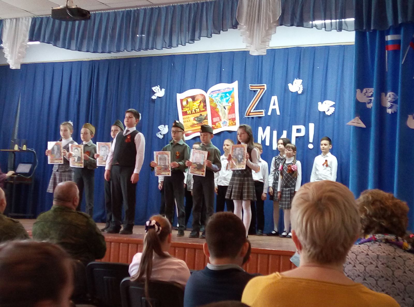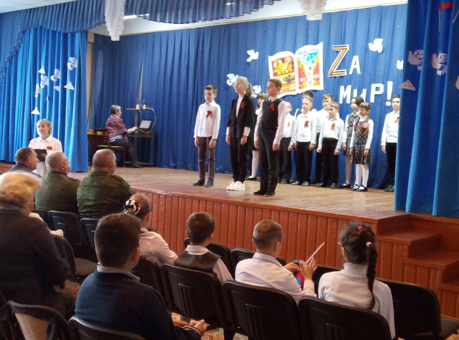 В преддверии всенародного празднования 77-й годовщины Победы в Великой Отечественной войне обучающиеся 3-4 классов под руководством своих педагогов представили литературно-музыкальную композицию «За мир».