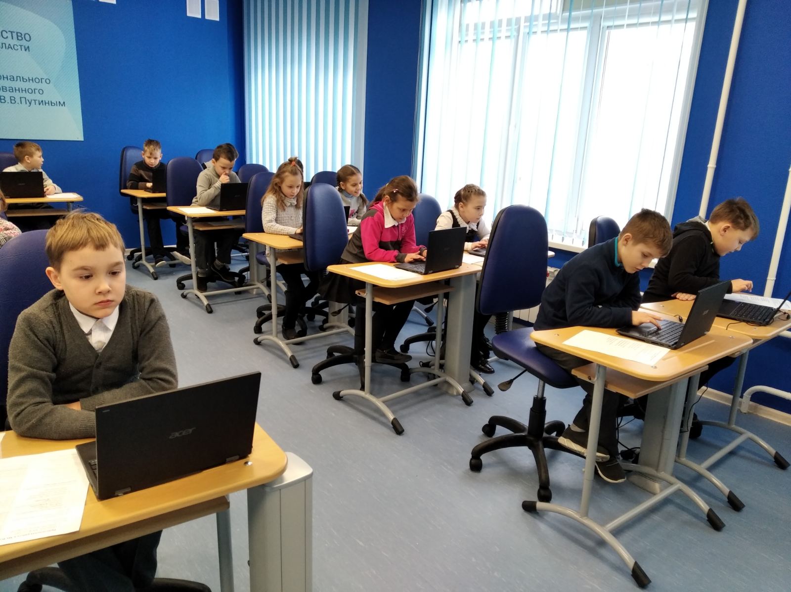 Ученики 2Б класса рисуют ночной город, используя оборудование нового кабинета ЦОС.