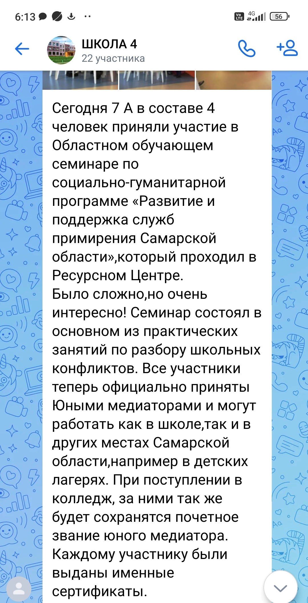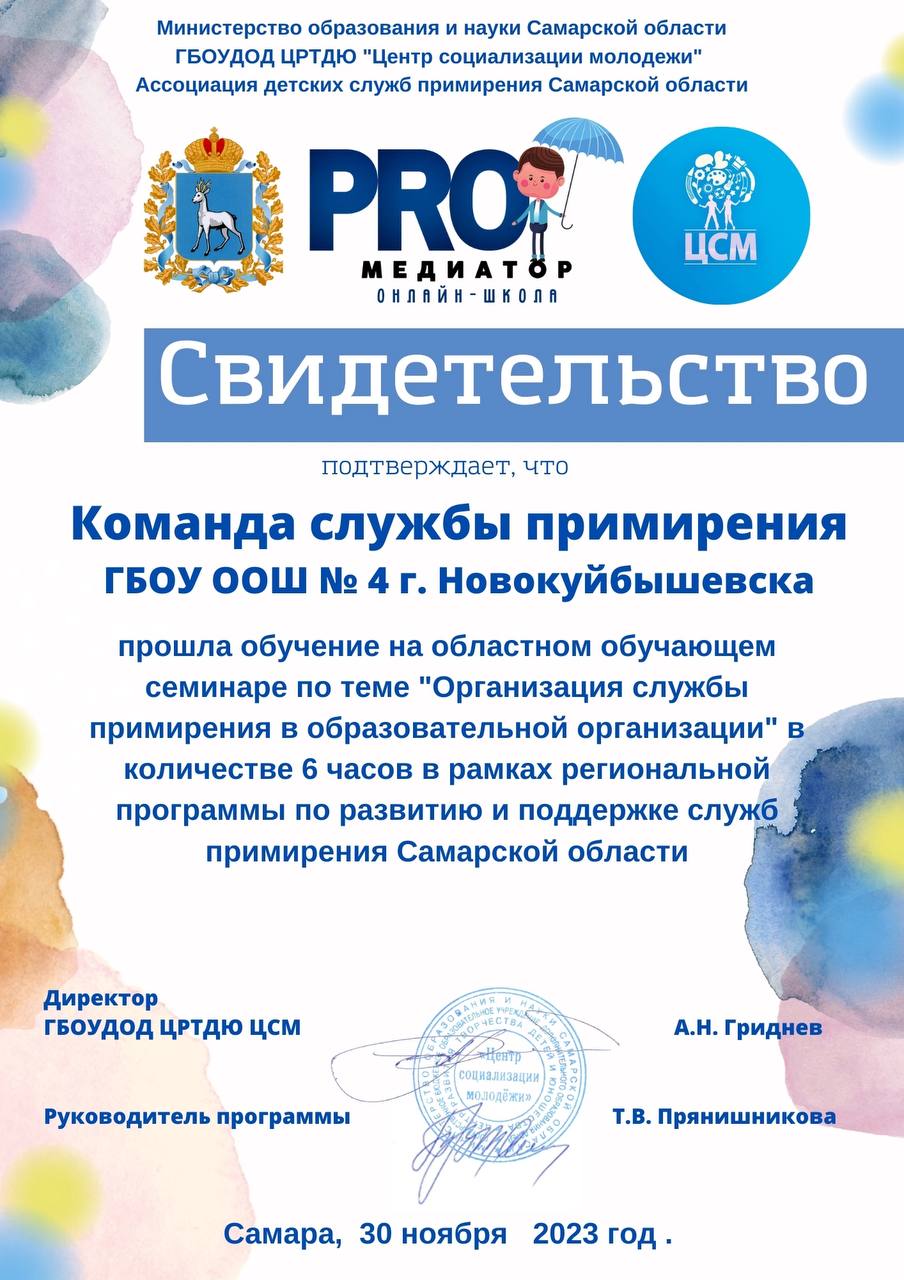 Информация о результатах работы службы медиации в ГБОУ ООШ № 4 г. Новокуйбышевска