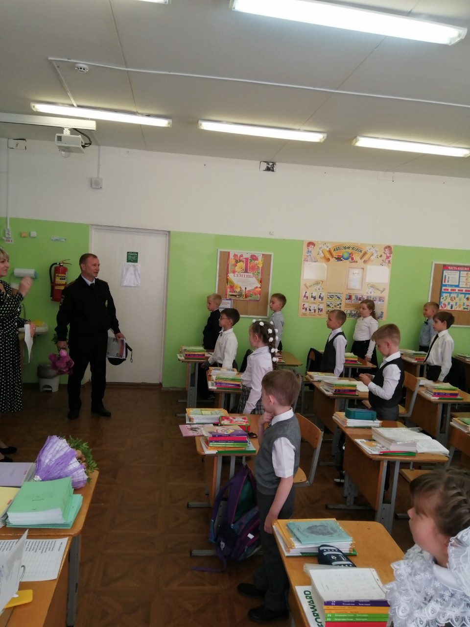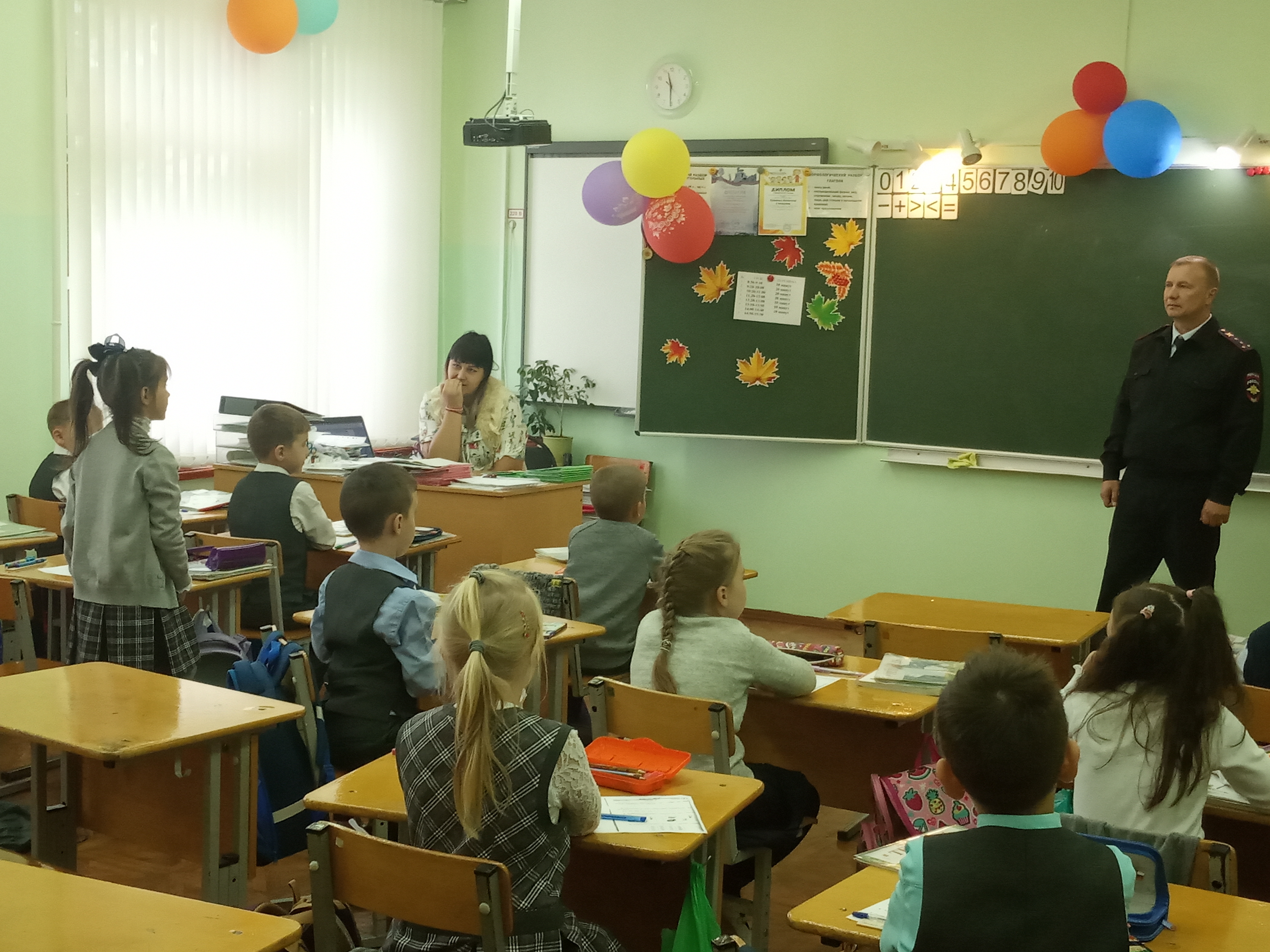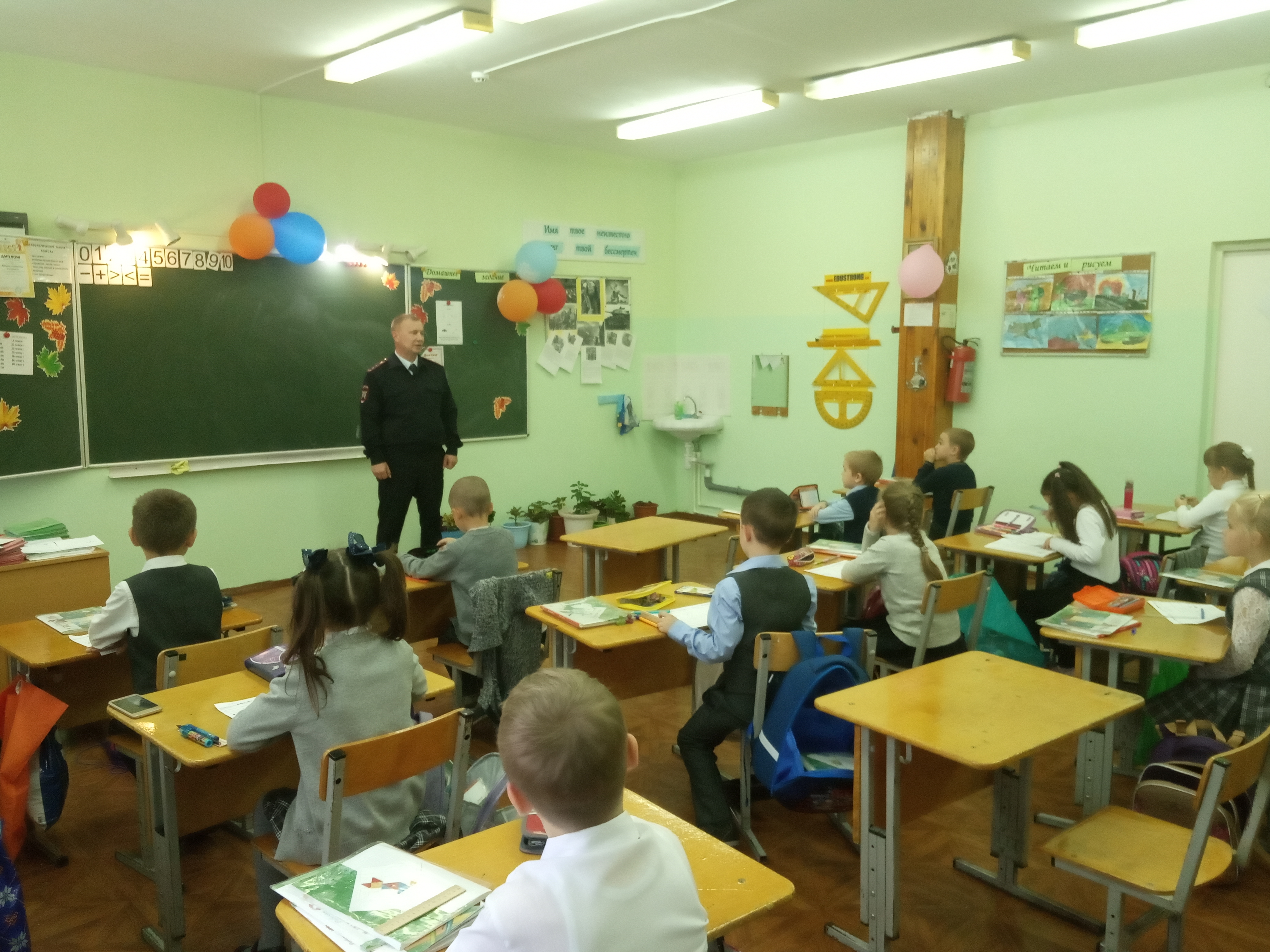 25 сентября в 1 классах состоялась профилактическая беседа по правилам дорожного движения, которую провел Сергей Геннадьевич Родин, старший лейтенант полиции ВДД ГИБДД г. Новокуйбышевска. Ребятам напомнили о правилах поведения на дороге.