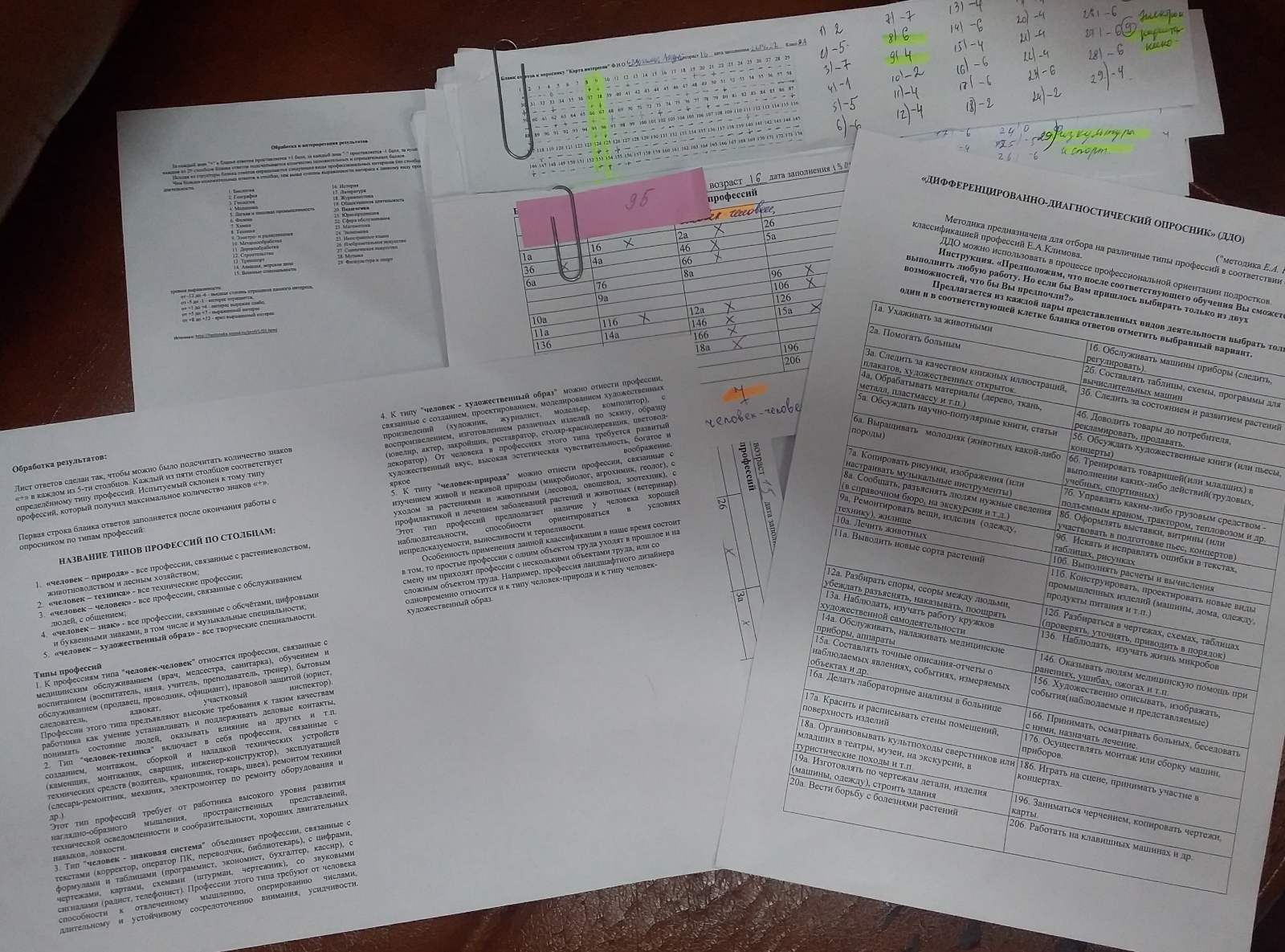 Continue reading Территориальная ярмарка профессий «Образование и карьера»В период с 19 по 21 апреля с целью изучения образовательных потребностей девятиклассников, планирующих освоение образовательных программ в СПО и в 10 классе, было проведено анкетирование. Ребята с помощью дифференцированно-диагностического опросника (методика Е.А. Климова) определили для себя приоритетные типы профессий: «человек-природа», «человек-техника», «человек-человек», «человек-знак», «человек-художественный образ» и по личной карте интересов (А.Е. Голомшток) проранжировали виды …