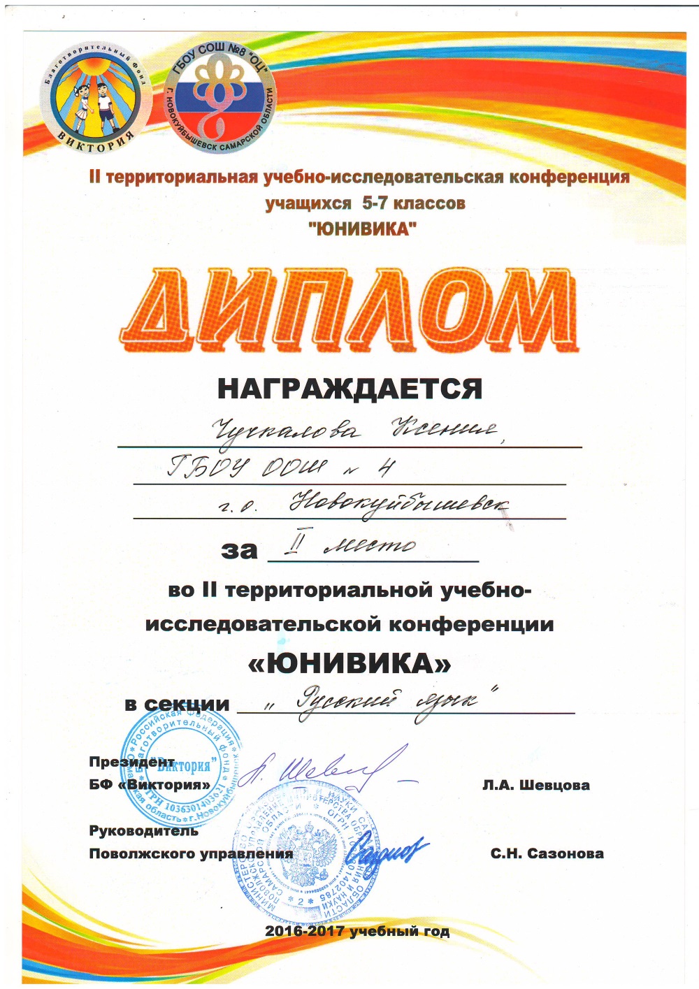 22 апреля в ГБОУ СОШ №8 «ОЦ» г. Новокуйбышевска состоялась II территориальная учебно-исследовательская конференция учащихся 5-7 классов «ЮНИВИКА». В секции «Русский язык» наша ученица, Чучкалова Ксения, заняла второе место. В секции «Биология» 3 место — Сторожук Яна. Поздравляем девочек и педагогов, подготовивших призёров!