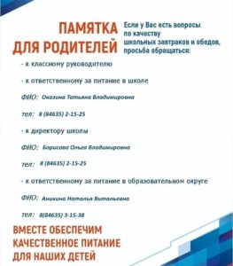 - Телефон горячей линии по питанию Поволжского управления МОСО: Аникина Наталья Витальевна, начальник отдела организации образовательных ресурсов, телефон 8(84635) 3-15-38.
