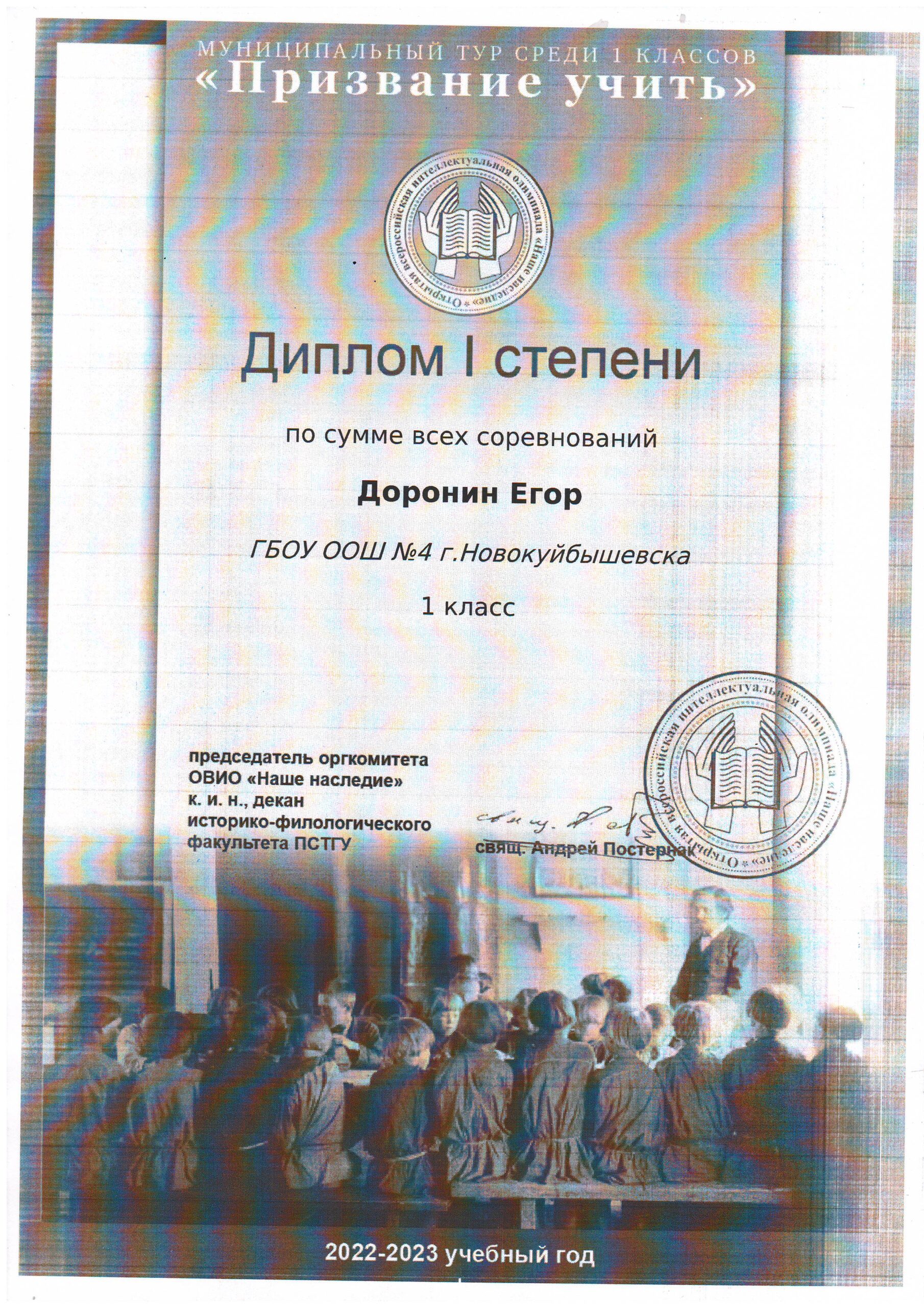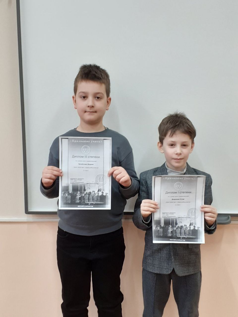 Поздравляем Доронина Егора и Чечёткина Вадима с отличным результатом в муниципальном туре среди 1 классов «Призвание учить»! Желаем победы на региональном этапе!