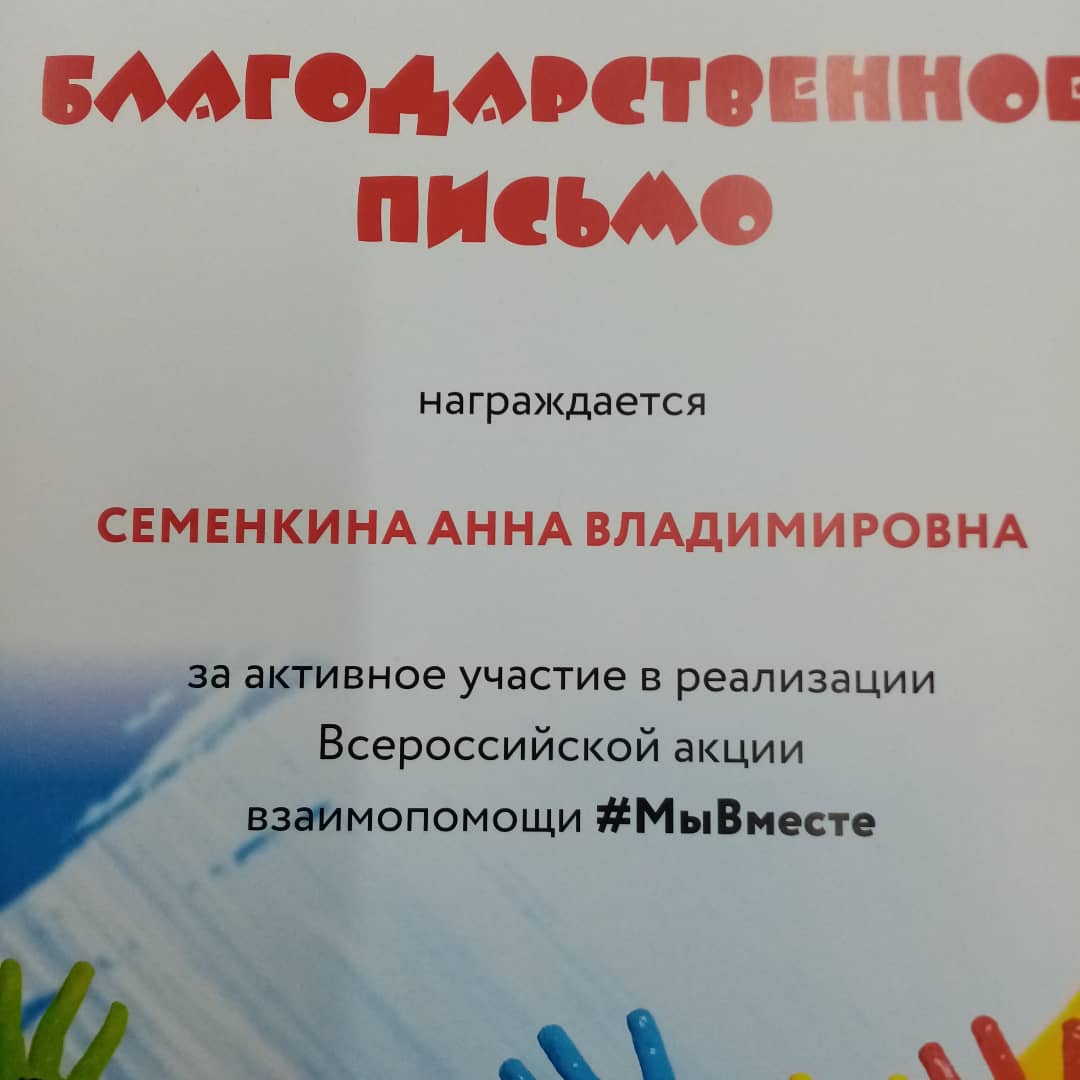 Continue reading Наши юные артистыПоздравляем Анну Семёнкину с Благодарственным письмом, которое она получила из рук главы городского округа Новокуйбышевск С. В. Маркова за реализацию общероссийского проекта «Мы вместе!».